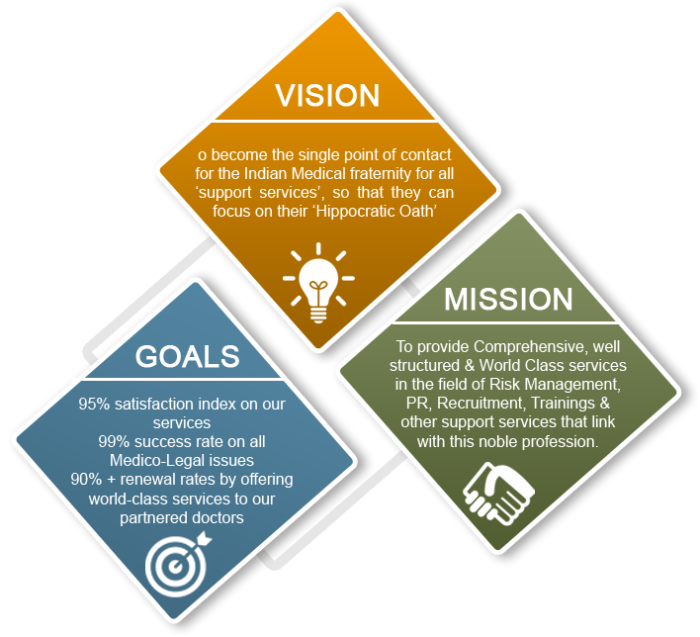 Governed by the single-minded vision of creating a pro-doctor ecosystem that allows doctors to focus on their “Hippocratic Oath” rather than be worried about the possible ramifications of medical decisions/calls we aim: